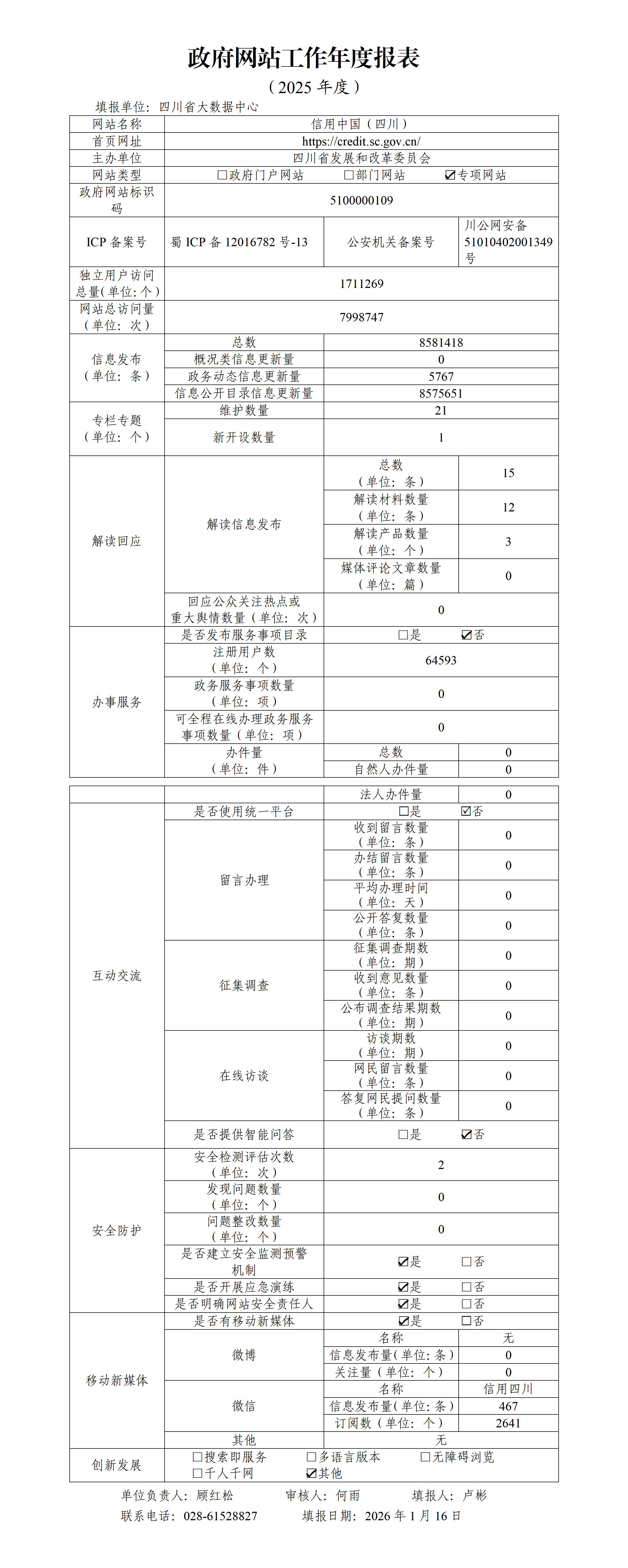 信用中国(四川)2025年度政府网站工作年度报表
