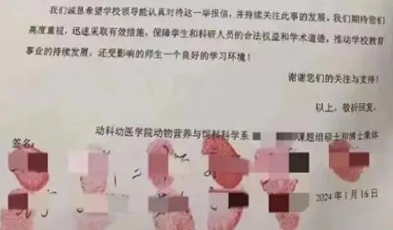 “做这件事情真的下了非常大的决心,赌上了自己所有的未来”“总要有人要做一些看起来很蠢但是正确的事情”“为了后来者,选择公开证据”……学生联名举报导师学术不端,尤其是一个个鲜红的手印和相关文字表述中的无奈、决绝,令很多网友心痛:“他们是遭受了多少不公、看见了多少龌龊,才鼓起这样的勇气!”网友纷纷呼吁涉事学校尽快调查并给出令人信服的结果。