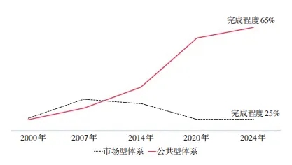 然而,10多年来,对公共型体系和市场型体系建设工作的推进极不平衡,两种类型体系建设的推动进程和完成程度大致如图2所示。