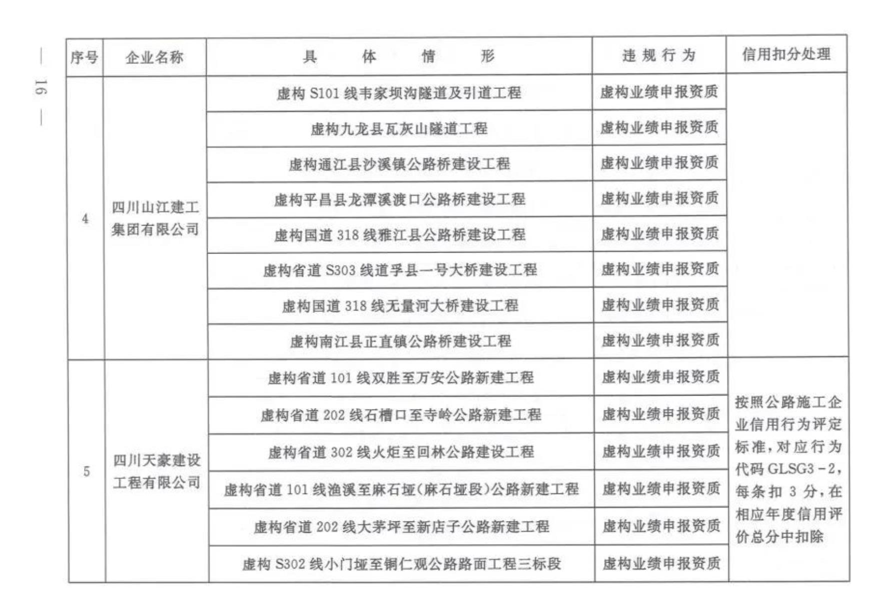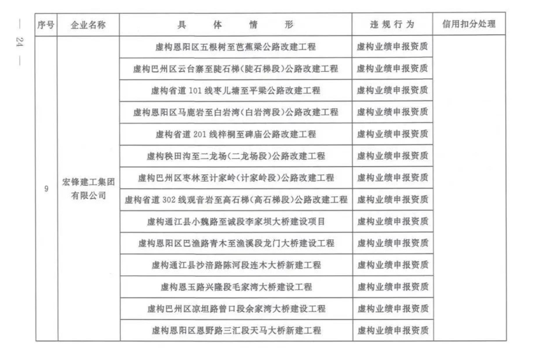 (三)清空恒峰工程建设有限公司录入全国公路建设市场信用信息管理系统的全部业绩信息。该企业需重新录入有关信息,按程序报相关省级交通运输主管部门审核。