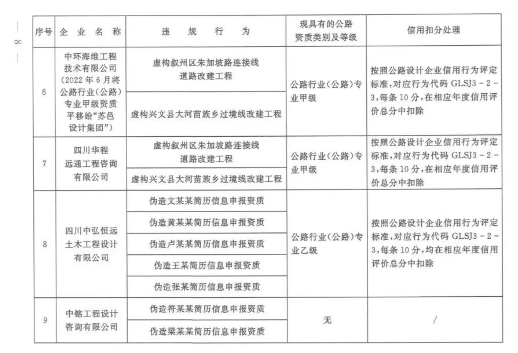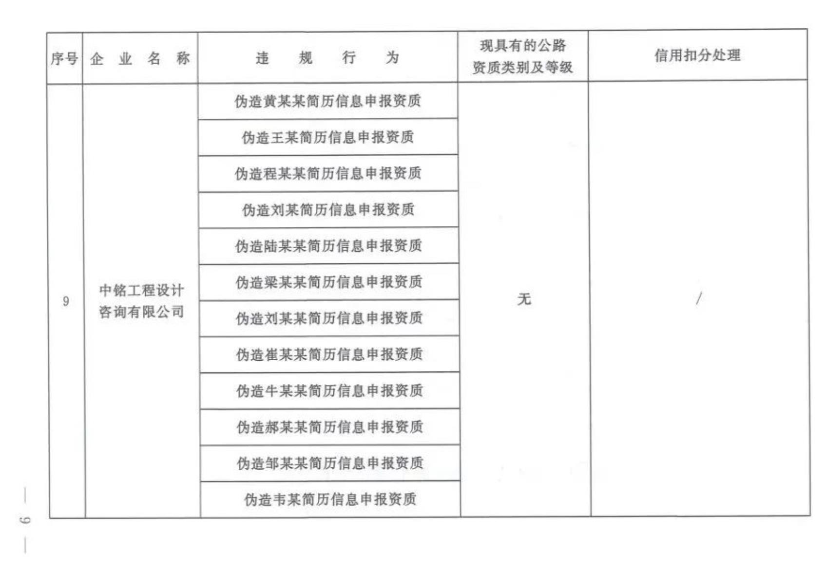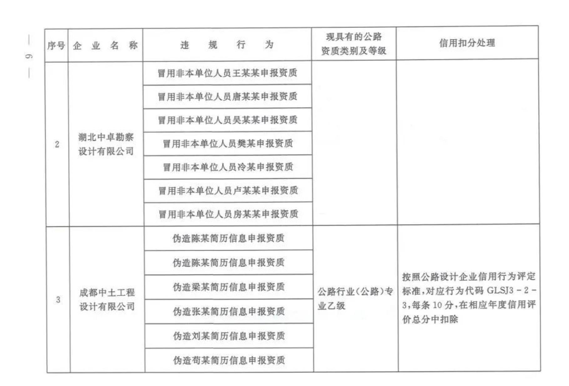 9家设计企业在资质申报过程中存在伪造人员信息、冒用他人信息、虚构业绩等弄虚作假行为。