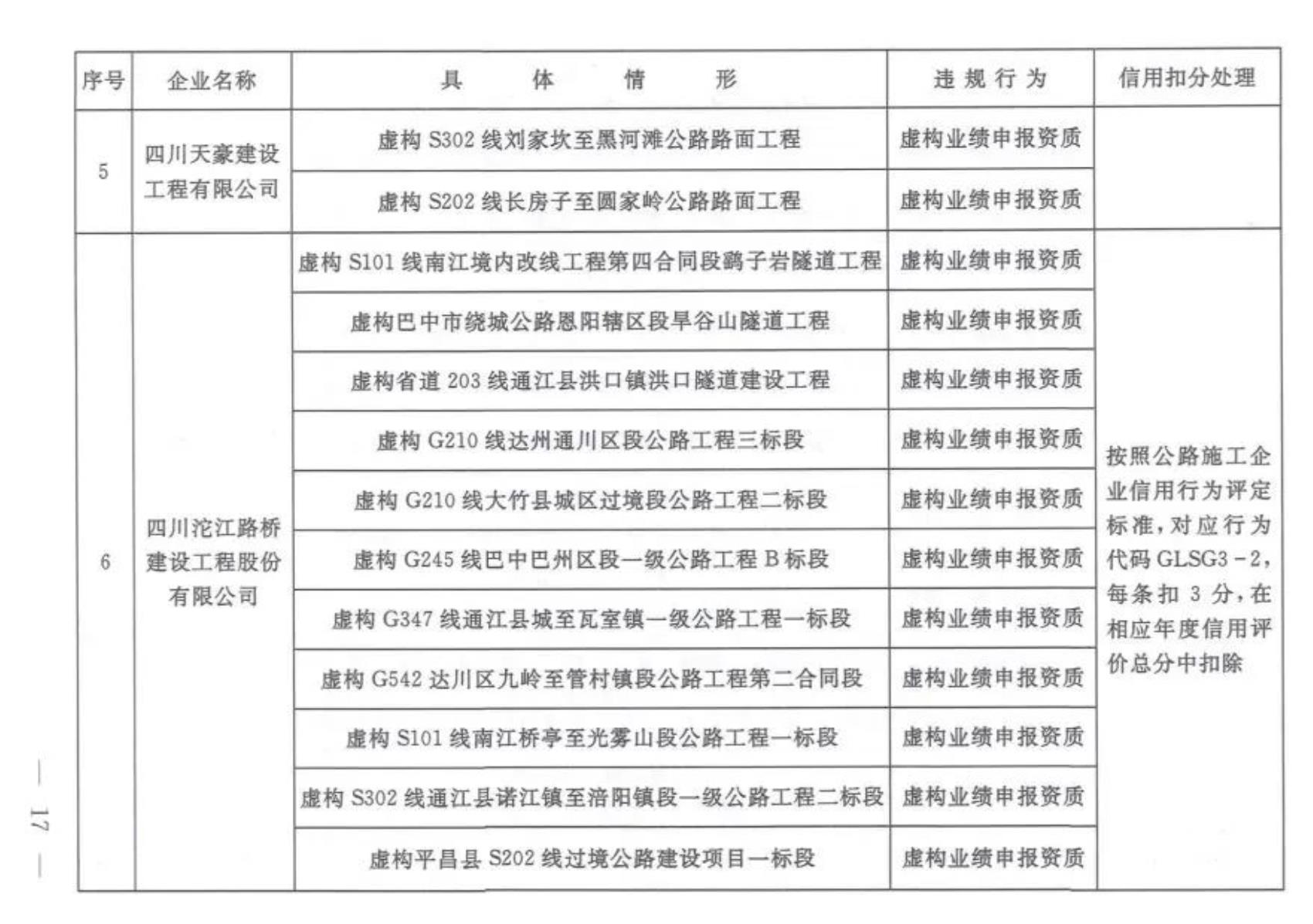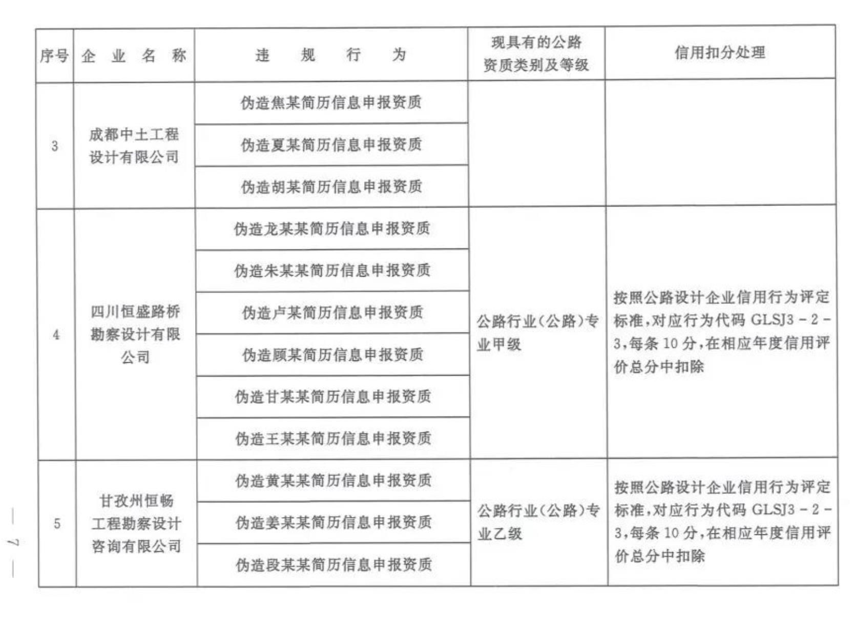 (二)根据《公路建设市场信用信息管理办法》《公路设计企业信用评价规则》《公路施工企业信用评价规则》《公路水运工程监理信用评价规则》等有关规定,对上述23家企业中已具备公路相关资质的沈阳中远交通勘察设计工程服务有限公司等7家设计企业、江苏高强建设工程有限公司等13家施工企业和鄂尔多斯市欣远监理咨询有限公司1家监理企业,部将指导相关省级交通运输主管部门在年度公路建设市场综合信用评价中作出信用扣分处理。