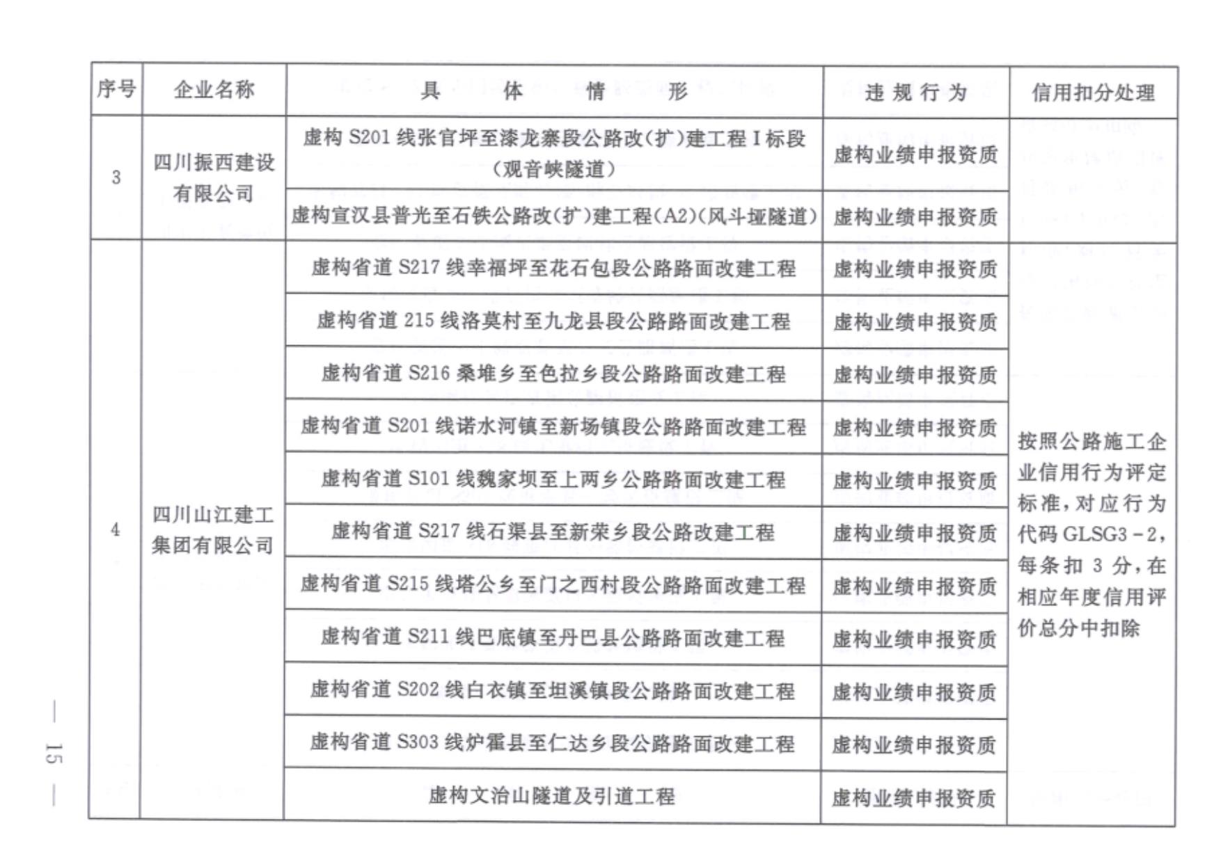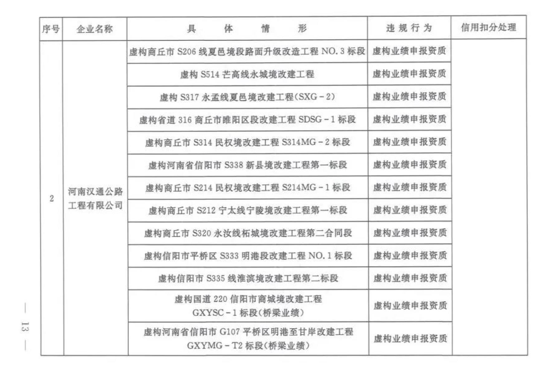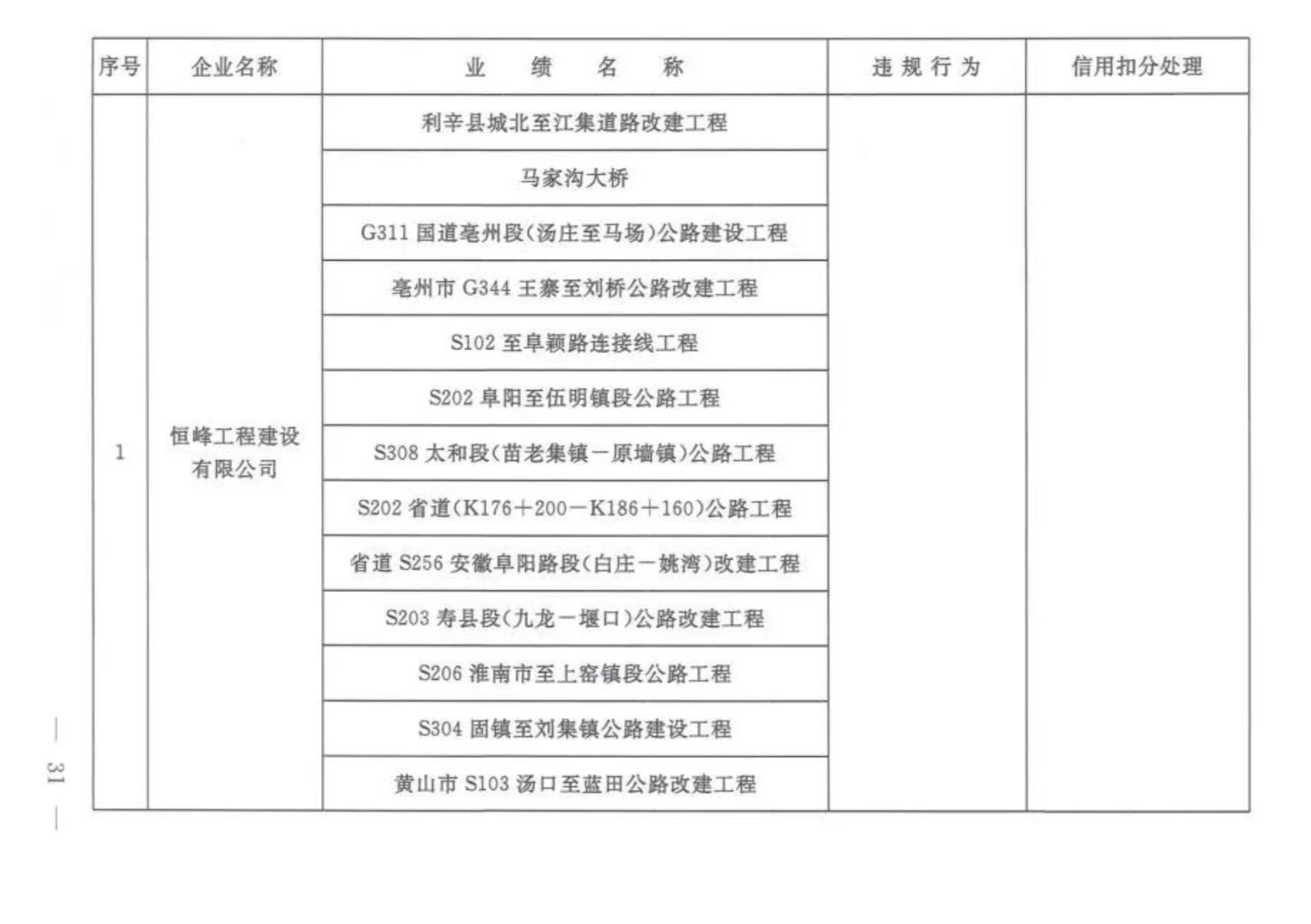 (三)清空恒峰工程建设有限公司录入全国公路建设市场信用信息管理系统的全部业绩信息。该企业需重新录入有关信息,按程序报相关省级交通运输主管部门审核。