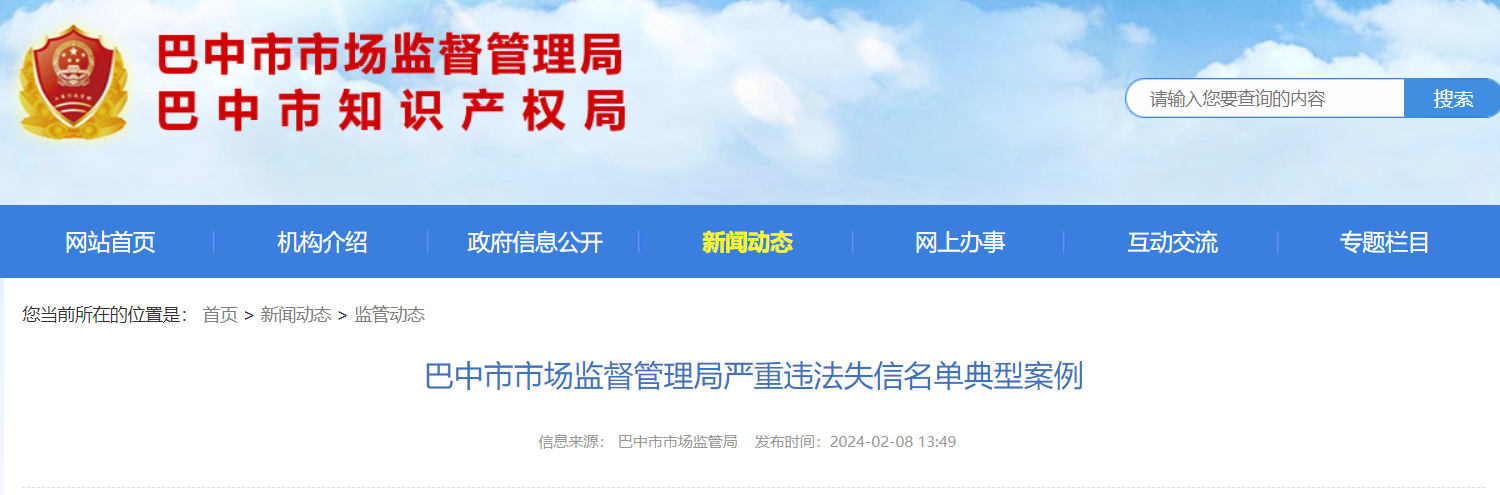 案例二:巴中市鲜美意商贸有限责任公司列入严重违法失信名单案