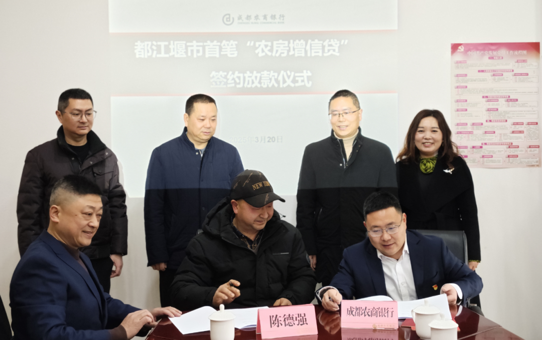 3月20日上午,都江堰市首笔“农房增信”机制发放仪式在成都农商银行都江堰支行举行,有效破解了农业生产“钱等粮”的困境。“眼下,要买肥料、树苗,加上请人工工资,缺口加起来近30万,多亏‘农房增信’机制解了燃眉之急。”贷款农户、龙池镇光荣社区村民陈德强展示他的房屋确权证,从提交资料到签约放款,三天内就获得了30万元低息贷款。