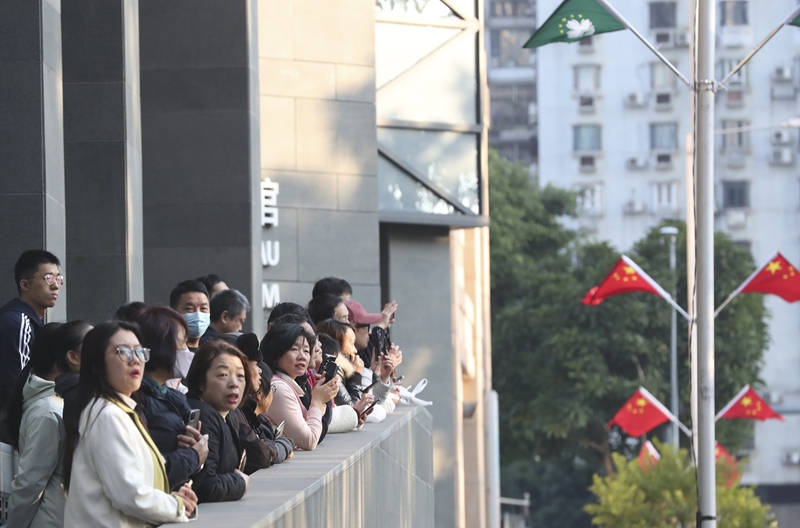 2024年12月20日,澳门特别行政区政府隆重举行升旗仪式,庆祝澳门回归祖国25周年。这是人们在观看升旗仪式。新华社记者 姚琪琳 摄